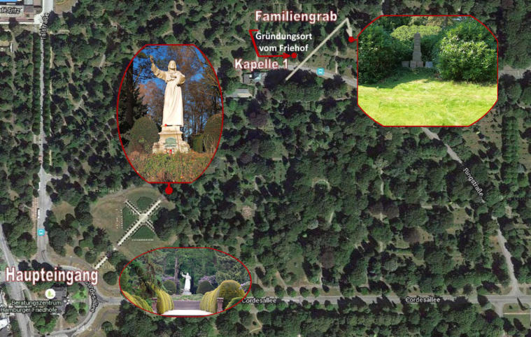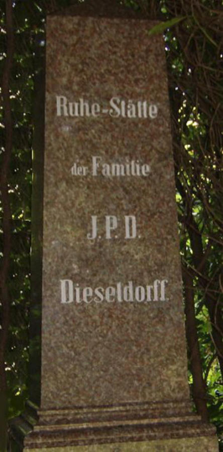 Ruhestätte der Familie DIESELDORFF,seit 150 Jahren gegenüber “Kapelle 1” und direkt am Gründungsort des “Friedhof Hamburg-Ohlsdorf”, größter (4 x 2,5 km) und sicherlich schönster Friedhofspark der Welt .Riesenpark, mitten in der grünen Stadt Hamburg