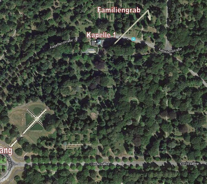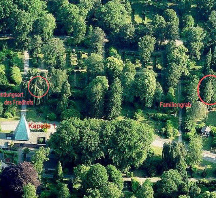 Wenige Meter vom Familiengrab entfernt,direkt gegenüber von Kapelle 1, wurdedieser Friedhof im Jahre 1877 gegründet.