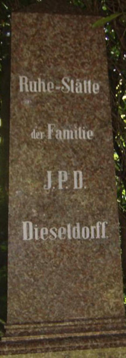 Ruhestätte der Familie DIESELDORFF,seit 150 Jahren gegenüber “Kapelle 1” und direkt am Gründungsort des “Friedhof Hamburg-Ohlsdorf”, größter (4 x 2,5 km) und sicherlich schönster Friedhofspark der Welt .Riesenpark, mitten in der grünen Stadt Hamburg.